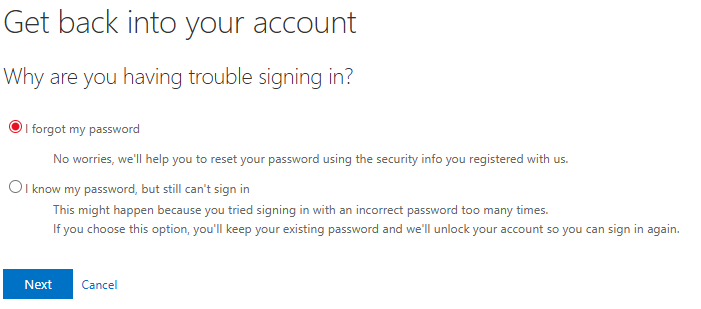 - Select the "I know my password, but still can't sign in" option