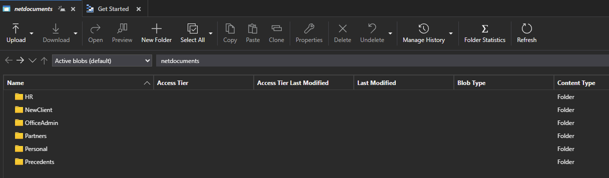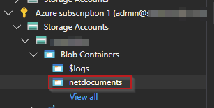 - Expand 'Blob Containers' In this example our files are storage in 'netdocuments'
