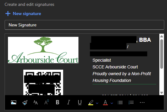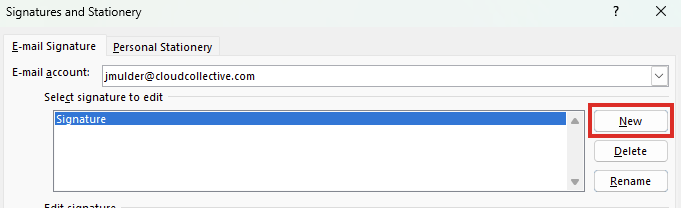 - Create your new signature or highlight the new signature, copy and paste it in the edit signature box