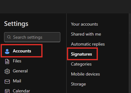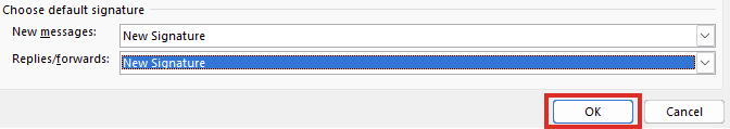 - Set the New Messages and Replies/forwards boxes to the new signature we just created and click save