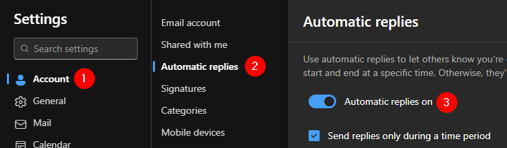 - The tab should open up the automatic replies field where you can set it up just like you would in the desktop version