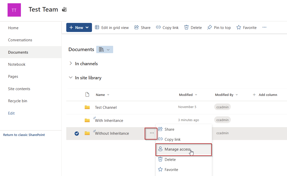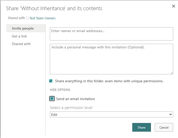 While our test user has been granted access to the site, they still cannot see the folder "Without Inheritance" To give access to a specific folder when inheritance is disabled: